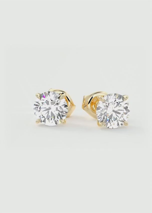 4.00ct Round Moissanite Stud Earrings • 14K Yellow Gold Classic Solitaire Earrings • Brilliant Cut Moissanite Diamond Earrings for Women